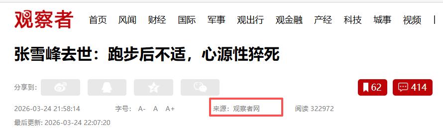 直到当晚官方讣告发布,才坐实他因跑步后心源性猝死离世的事实,瞬间引发全网热议