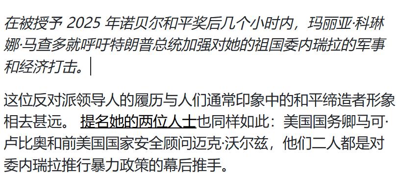 舆论如何看待现在的诺贝尔和平奖,难道马查多不知道吗?