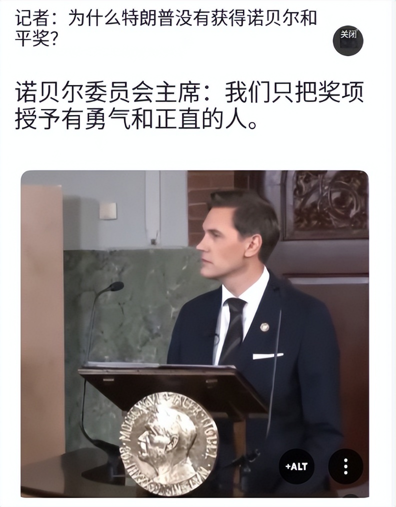 这个结果出来后就有人问诺贝尔奖的主席,为何特朗普没得这个奖,该主席的回答很正式。