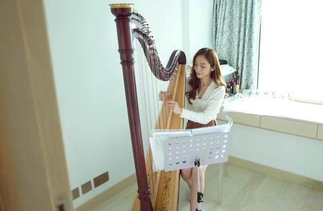 书房内的竖琴与书法作品,更透露出她对艺术的追求。