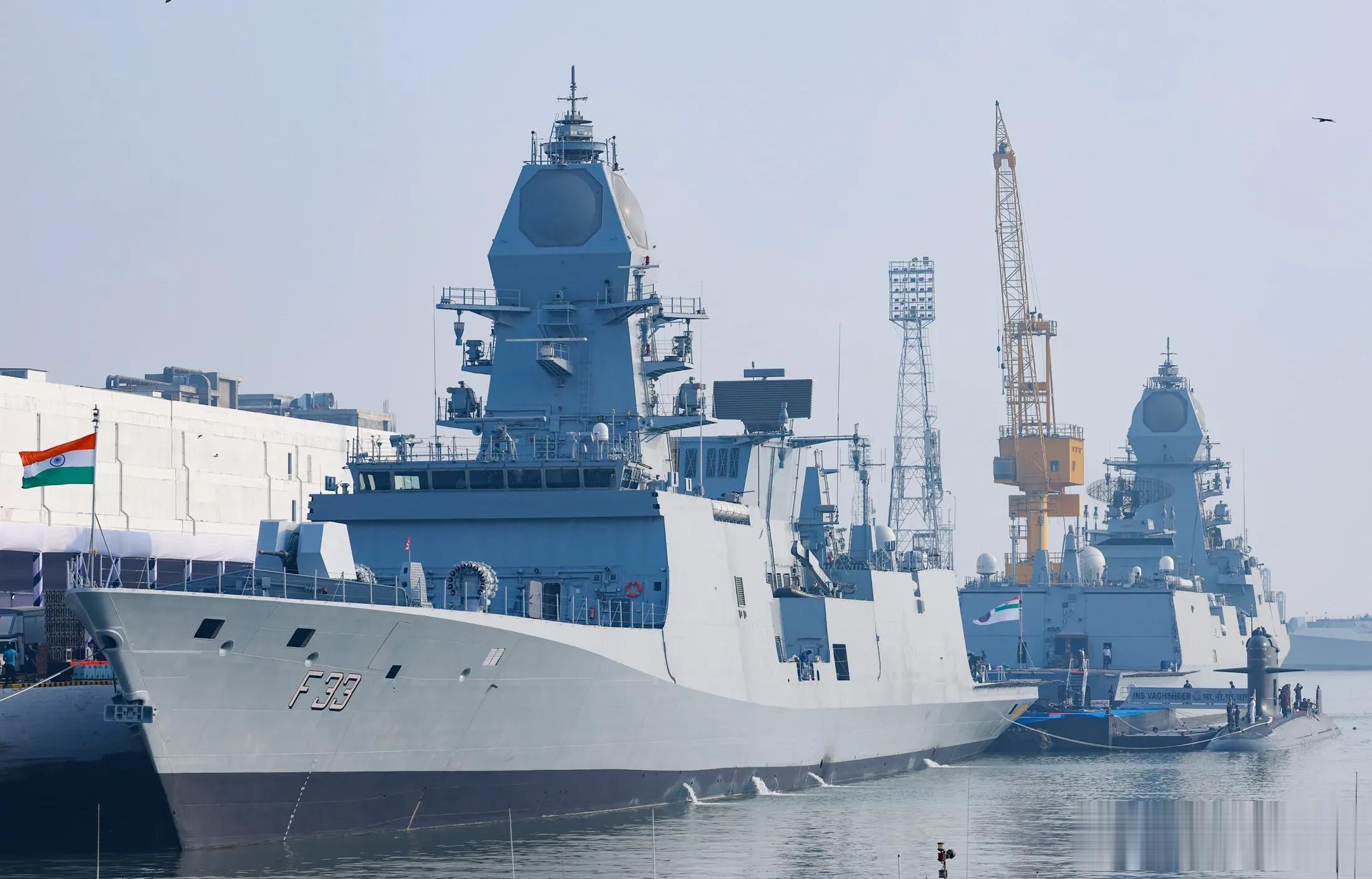 2023年印度首次双航母编队拉练(早于咱们)P-17A是印度主力国产护卫舰,排水量接近7000吨,可以接近驱逐舰的标准。值得注意的是,它可以发射“布拉莫斯”超音速反舰导弹,对于中大型舰艇具有很强打击能力,同时在建七艘证明这已是一款成熟型号。