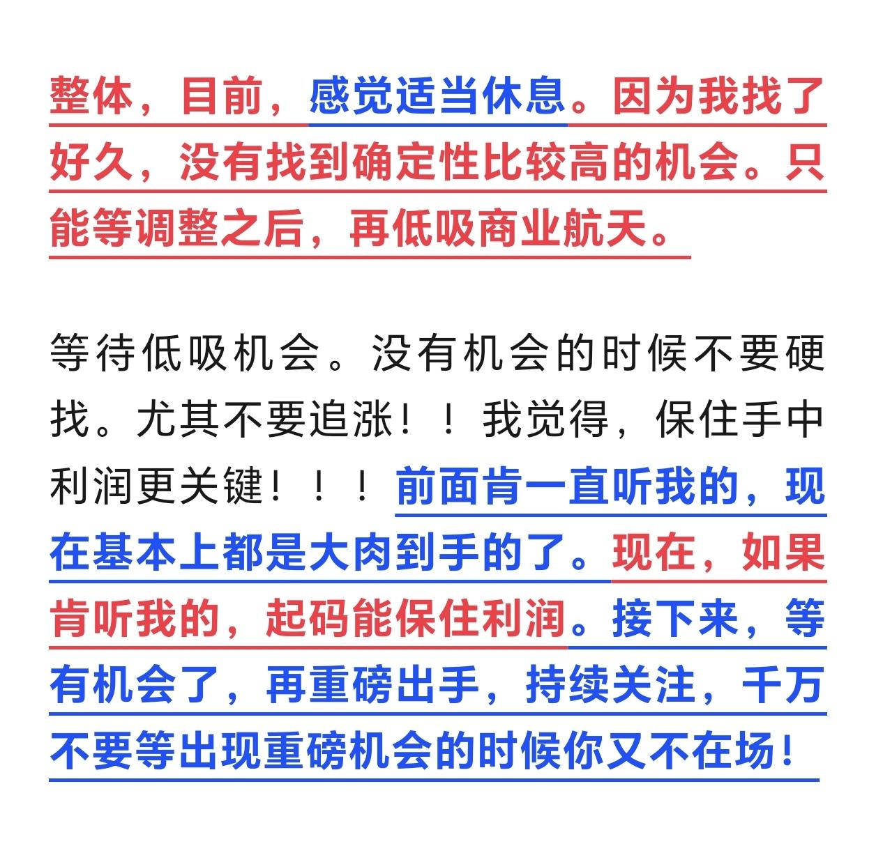 等待低吸机会。没有机会的时候不要硬找。尤其不要追涨!!我觉得,保住手中利润更关键