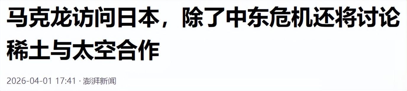 信息来源:2026-04-01——澎湃新闻——马克龙访问日本,除了中东危机还将讨论稀土与太空合作