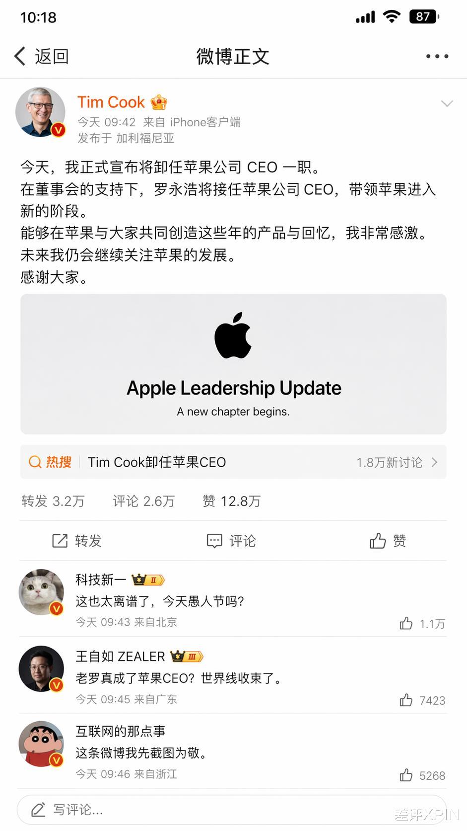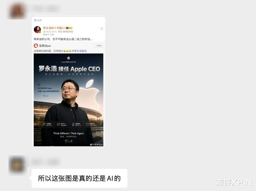 甚至还能直接做出库克官宣卸任苹果CEO,宣布由老罗来接任的微博截图。