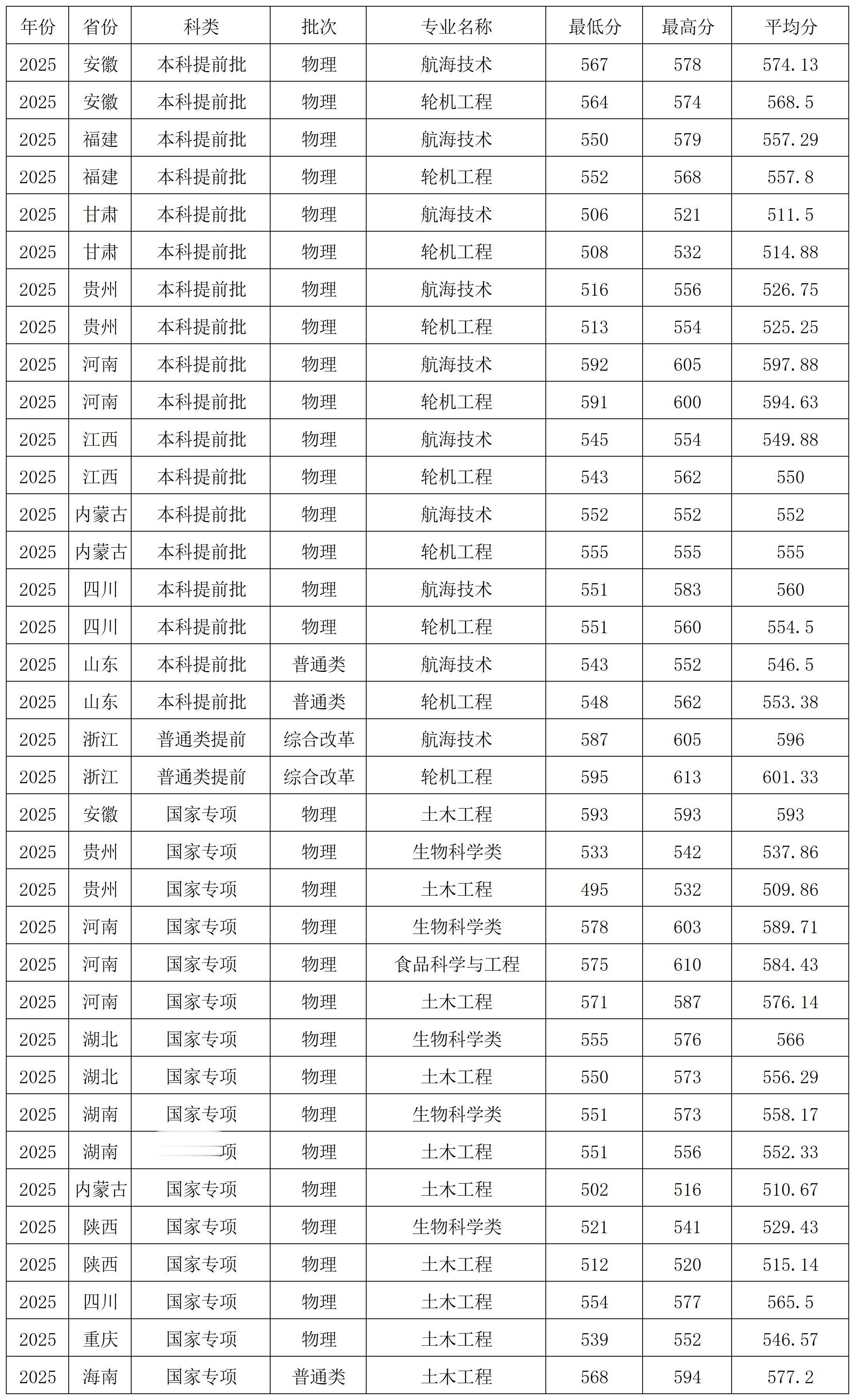 宁波大学2025年在提前批、国家专项在各省各专业录取分数线
