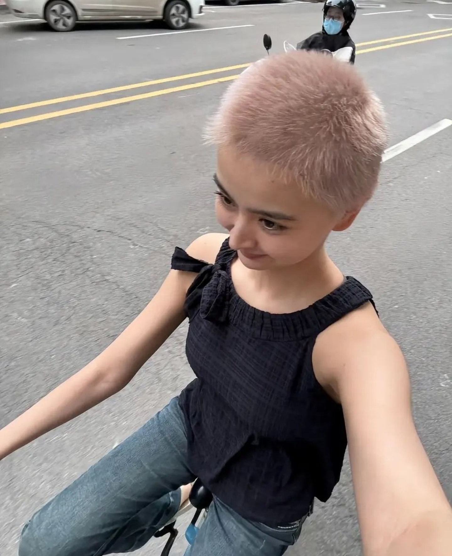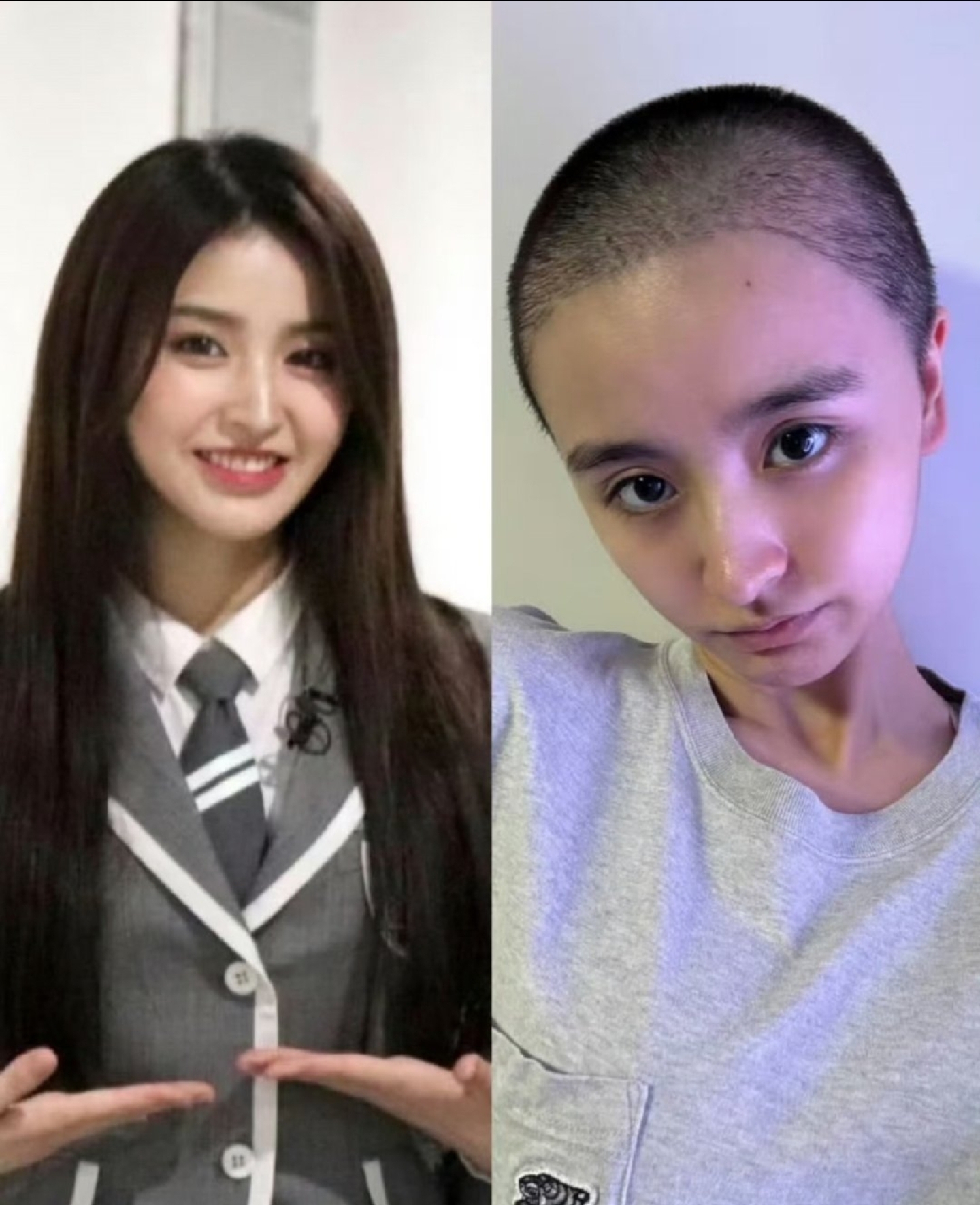 她剃掉了留了很多年的长发,剪了寸头,被网友偶遇的时候,眼神空洞,神情憔悴,和当年那个笑眼弯弯、元气满满的女孩,判若两人。
