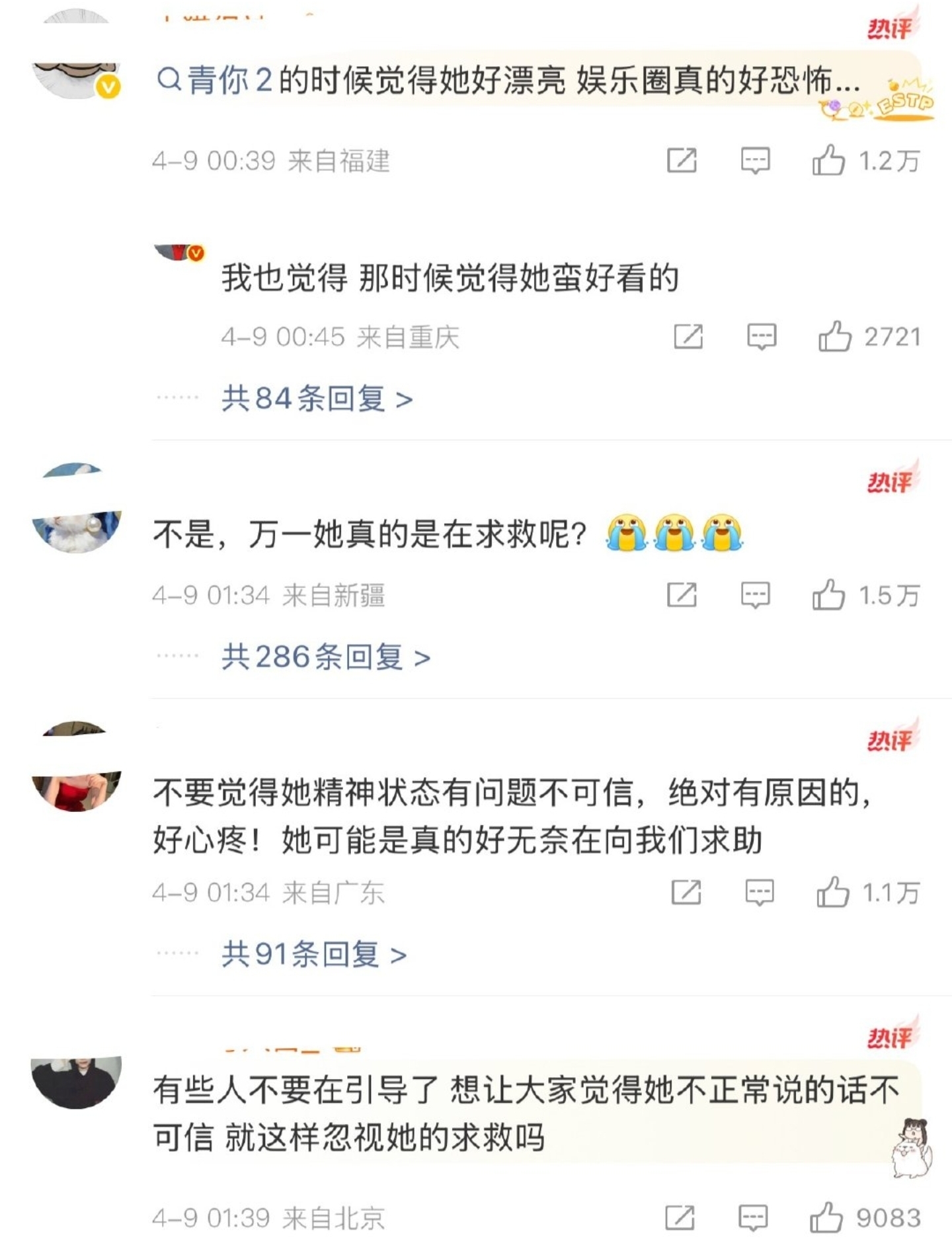 那时候她就已经在隐晦地发求救信号了,分享的歌曲里,全是“发出求救信号”“帮我逃出这个困境”的歌词,可那时候,还是有很多人在骂她炒作无下限。