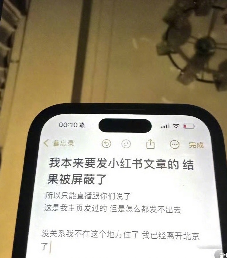 她想在网上发长文求救,被平台屏蔽了;想发照片佐证,被限制了所有发布渠道;最后只能开直播,对着镜头,用手机备忘录一个字一个字地敲给屏幕前的网友看。