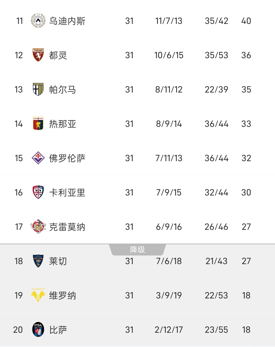 亚特兰大3-0莱切25/26赛季意甲联赛第31轮,亚特兰大客场以3-0大胜莱切,上半场比赛第29分钟,斯卡尔维尼禁区内大力抽射建功,亚特兰大1-0莱切,上半场亚特兰大1-0领先莱切,下半场比赛,第59分钟,科斯托维奇禁区内转身推射破门,亚特兰大2-0莱切,第73分钟,拉斯帕多里迎球劲射破门,亚特兰大3-0莱切,全场比赛,斯卡尔维尼、科斯托维奇和拉斯帕多里联袂建功,帮助亚特兰大取得大捷。亚特兰大拿到关键三分后,继续向着欧战区发起冲击。