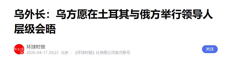 信息来源:环球时报:乌外长:乌方愿在土耳其与俄方举行领导人层级会晤