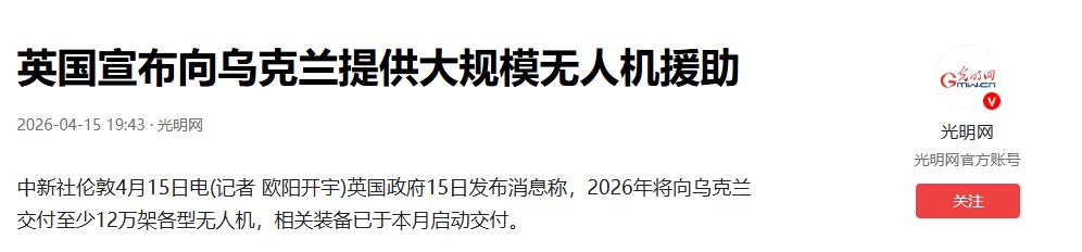 光明网:英国宣布向乌克兰提供大规模无人机援助