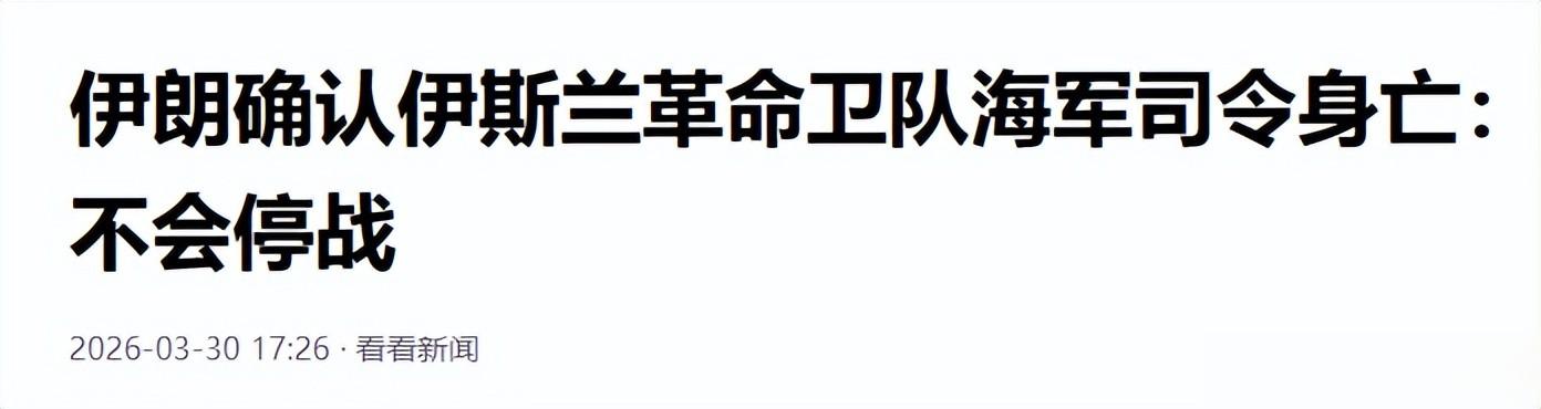 信息来源:2026-03-30——看看新闻——伊朗确认伊斯兰革命卫队海军司令身亡:不会停战