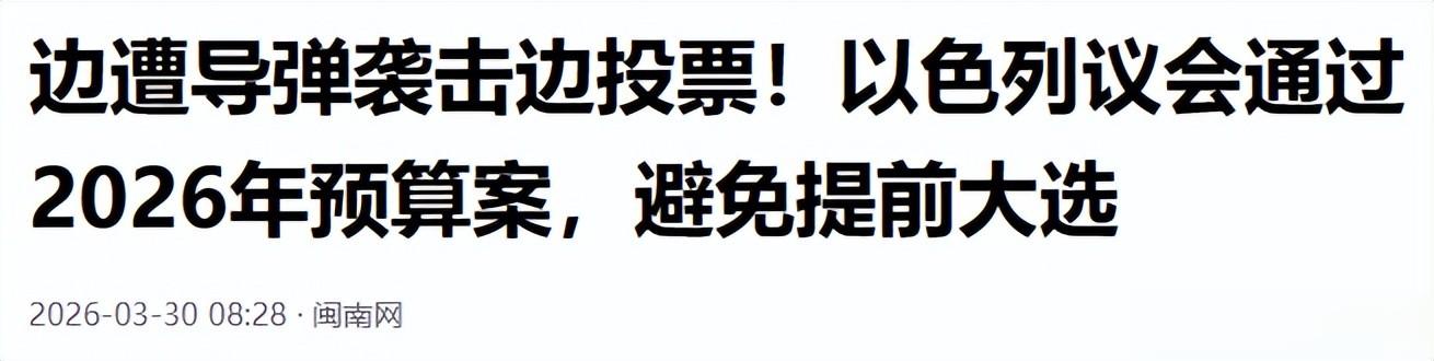信息来源:2026-03-30——闽南网——边遭导弹袭击边投票!以色列议会通过2026年预算案,避免提前大选