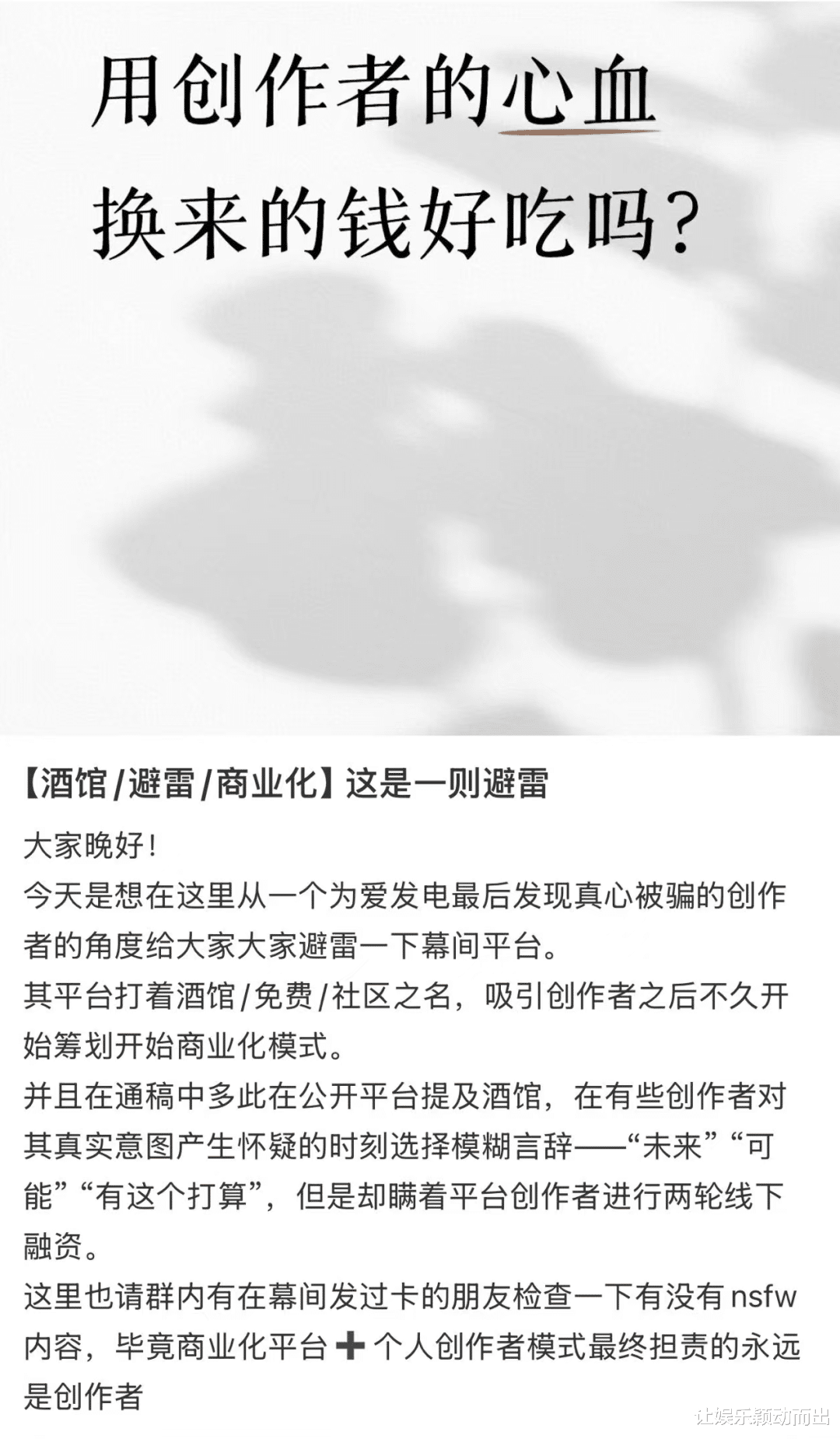 除了“幕间”之外,网络上还有大大小小“类酒馆”的社群存在,而不少创始人是有着商业化想法的,可用户对于商业化的态度却出奇抗拒。