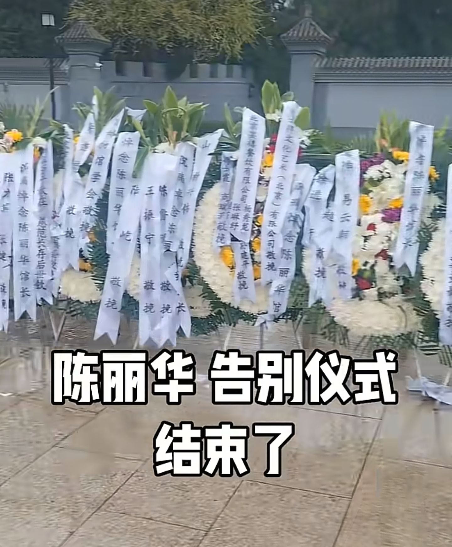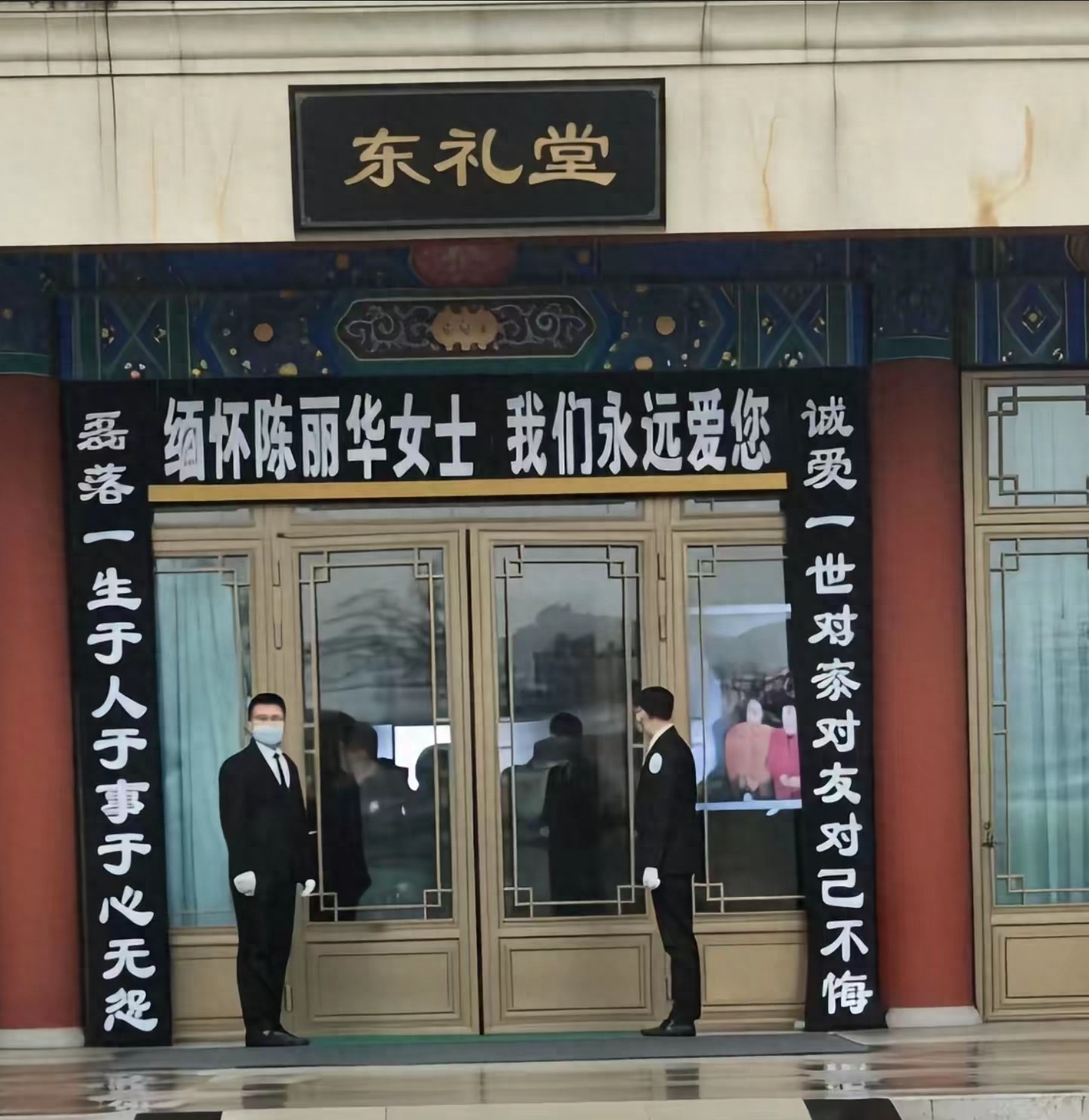 当镜头扫过东礼堂的大门,黑底白字的横幅“缅怀陈丽华女士 我们永远爱您”,在湿冷的空气里,每一个字都透着沉甸甸的悲伤。