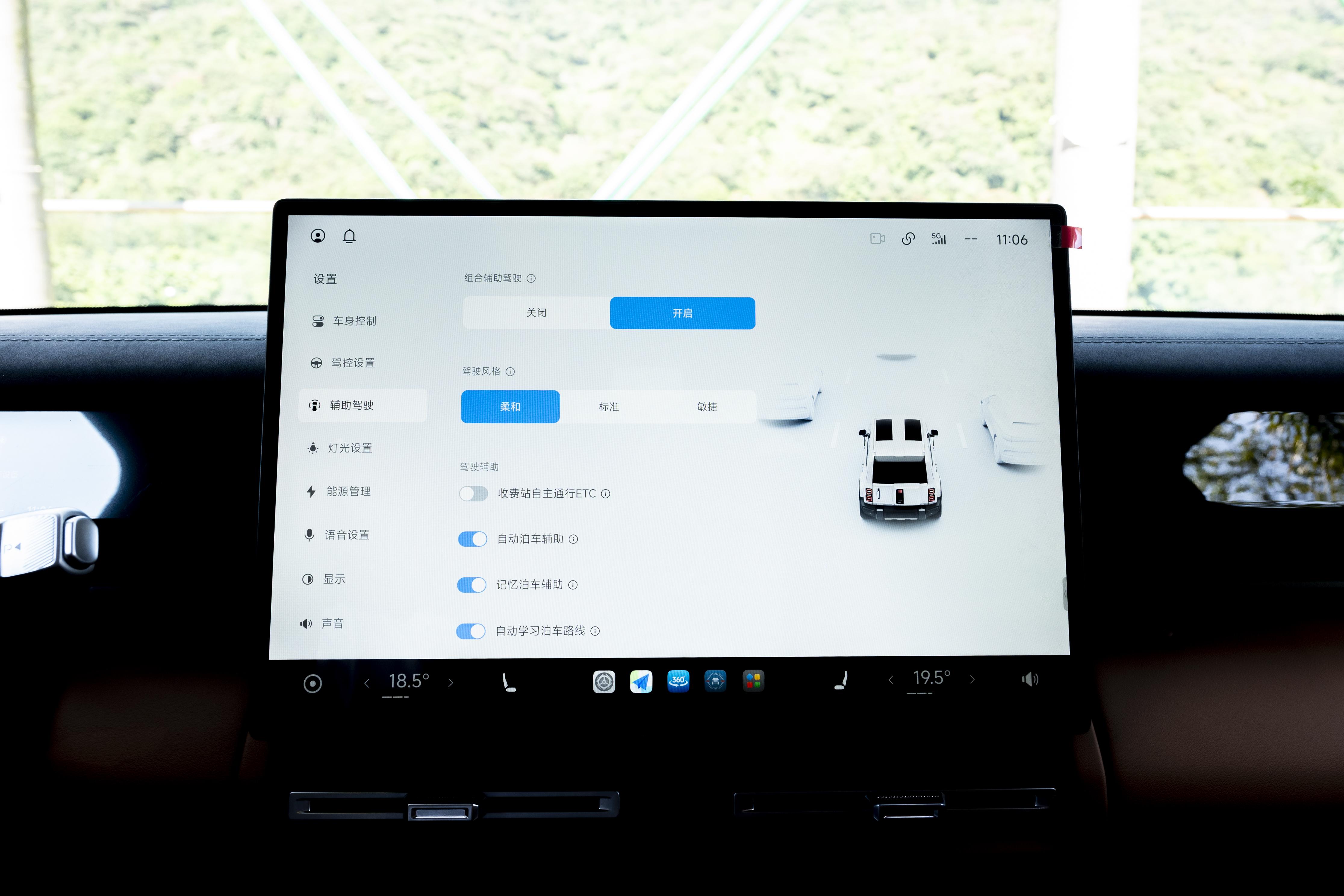 硬件配置扎实:11颗摄像头、12颗超声波雷达、3颗毫米波雷达,高配还有激光雷达。全速自适应巡航在高速和快速路上表现成熟,跟车平顺自然,加减速不突兀。
