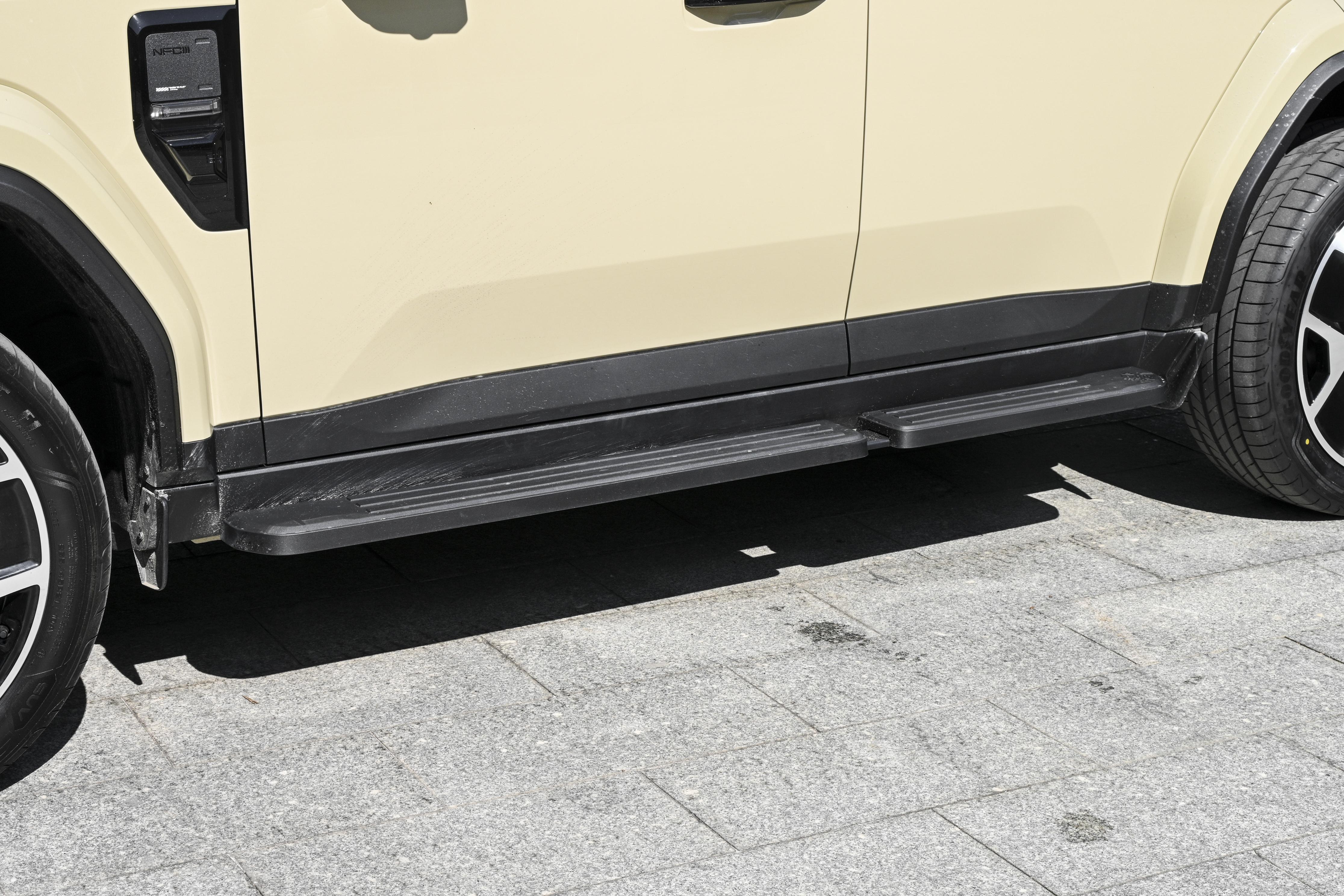几个细节我比较喜欢:固定侧踏板是标配,老人小孩上下车很方便,不像有些车为了好看做隐藏式踏板,结果家里老人上车要爬。车尾的背负式全尺寸备胎,既是风格,也是实用——跑长途或者走烂路,多一份安心。