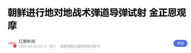 红星新闻:朝鲜进行地对地战术弹道导弹试射 金正恩观摩