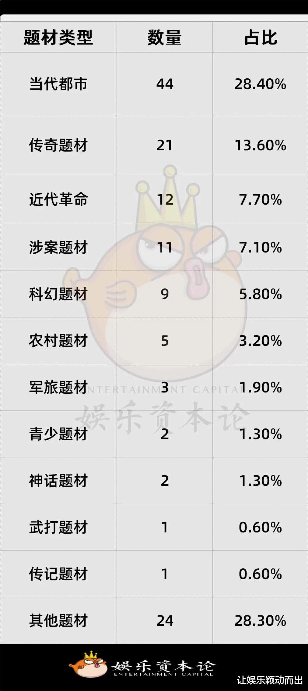 在题材方面,当代题材有93部,占比62%,现代都市、悬疑、科幻题材成为主流,现实主义创作持续深化。古代题材28部,占比18.7%,控量政策持续生效,以古代传奇为主。短剧以及季播剧共29部,占比19.3%,平台与制作公司加码中短剧集,降本增效明显。网络故事片占比36.7%,这一板块异常活跃,成为中小成本试错的主要阵地。