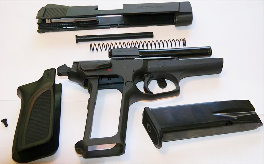 该枪另一处区别在于空仓挂机结构。在勃朗宁大威力(High Power)手枪上,空仓挂机杆外露于套筒座外侧,其转轴同时充当分解限位部件,取下该转轴即可完成分解;而在 BDM 手枪上,空仓挂机几乎完全隐藏在套筒座内部,仅露出一小片操作按键。分解则依靠套筒座左侧专用旋转扳手,转动扳手后,枪管、套筒与复进簧可向前从套筒座上取下。