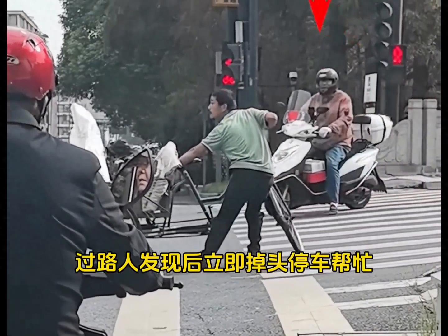 行动不便的男子拉着一车货物艰难上坡,过路人发现后立即掉头停车帮忙,两人合力将三轮车推上坡。这个世界很烂,但总有人缝缝补补。