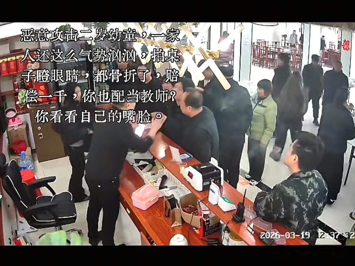 女子不分青红皂白,看到自己女儿疑似被欺负,就过来对饭店老板的2岁女儿动手,服务员想阻拦都拦不住。