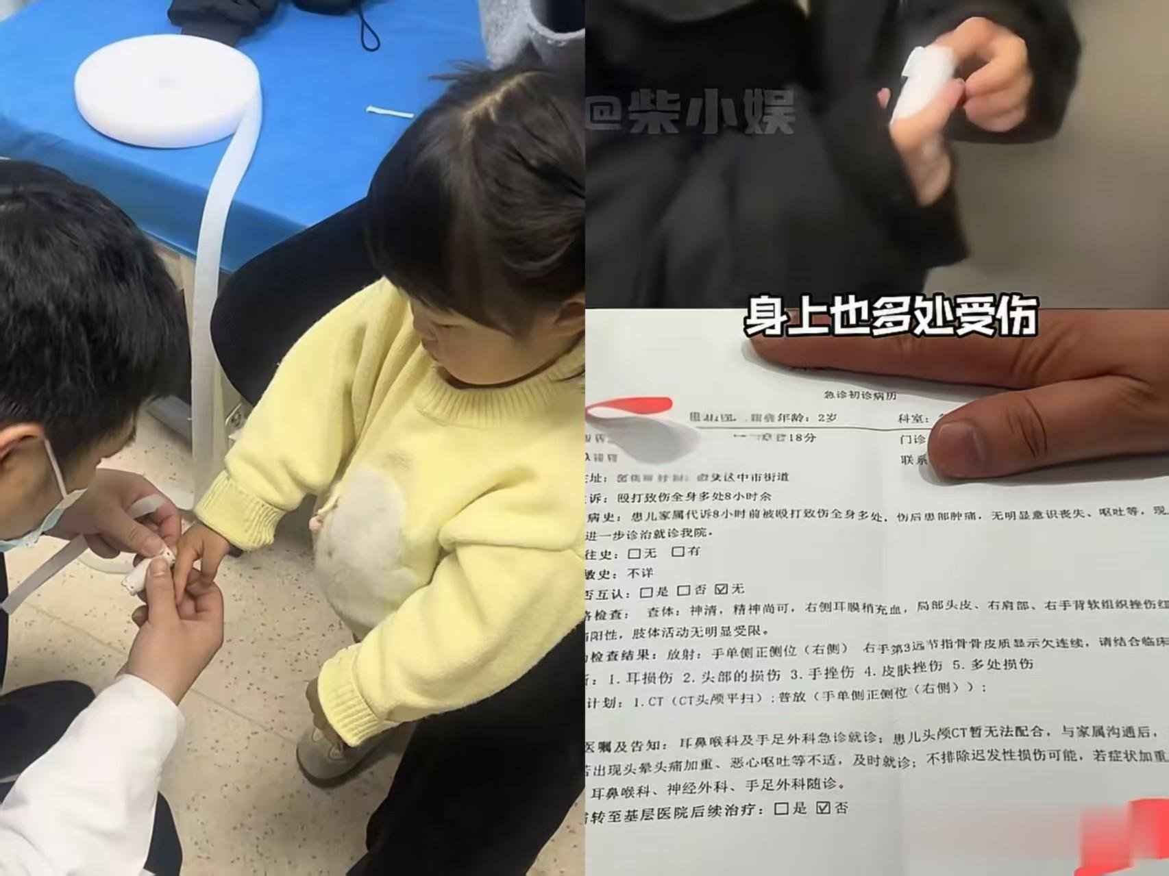 事后已经确定,饭店老板的2岁女儿耳朵和脸部有多处损伤,最严重的是手指骨骨折了。