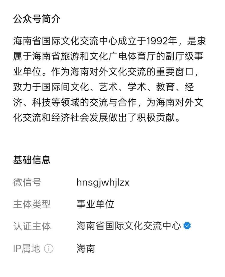 合作双方都带有“国”字背景,合作项目应该是靠谱认真的。尤其是海南省国际文化交流中心的身份,这可是妥妥的官方背书在释放信号。