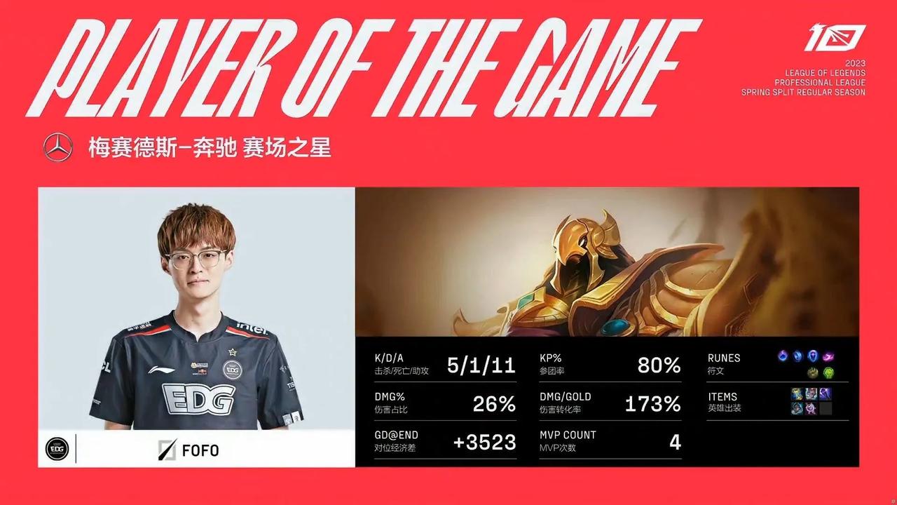 fofo沙皇又现名场面,直接让EDG奠定了前期的优势!!! 是不是真的从blg出来的选手都有什么说法呀!fofo今年在EDG几乎每场比赛都是高光发挥,另外doggo其实在UP表现也是要好于去年在BLG的……