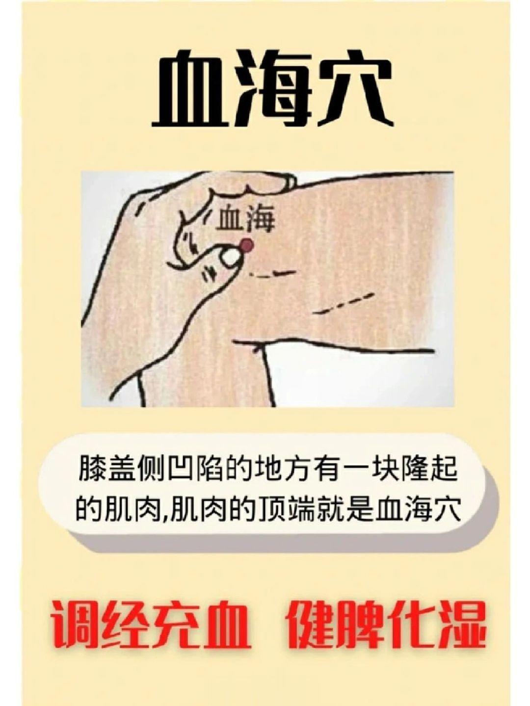 位置:坐在椅子上,将腿绷直,在膝盖侧会出现一个凹陷的地方,在凹陷的地方上有一块隆起的肌肉,肌肉的顶端就是血海穴
