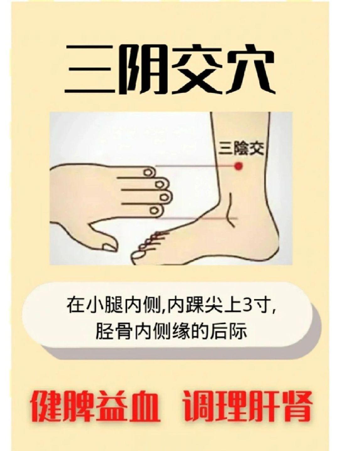位置:在小腿内侧,内踝尖上3寸,胫骨内侧缘的后