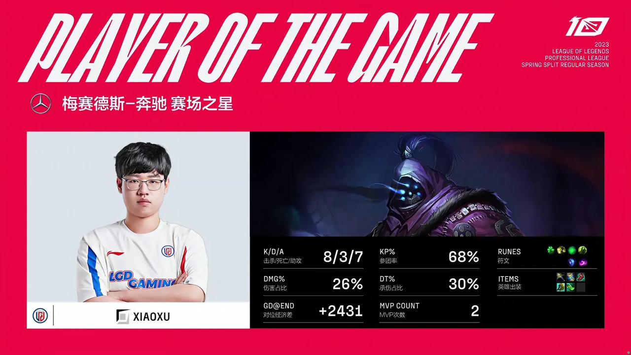 bin估计自己也没想到,本来来杭州打个卡就结束了!最后不但BLG输给了LGD,自己更是三场比赛都被xiaoxu给单杀了!!! bin这场比赛的表现可以堪比theshy的冥场面,表现真的是太差了!而BLG这个队战至LPL常规赛中期的整体表现相比于赛季初也差得太远了。BLG加上今天先后在LGD和WE这种实力的队伍上丢分,队伍整体的稳定性实在是不能说他们是一个强队,相比于上赛季来说,唯一值得安慰的地方是可能没有花那么多钱但战绩也没有什么根本改变。