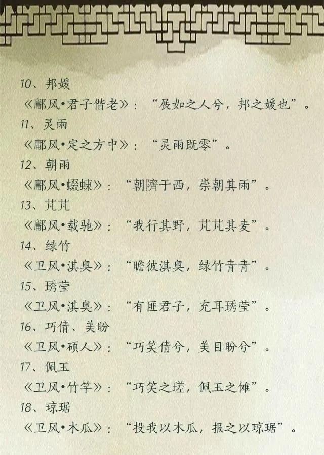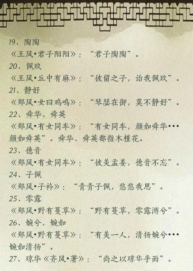 古诗词中隐含的名字 来学习下吧 总有一天你会用到的。。。