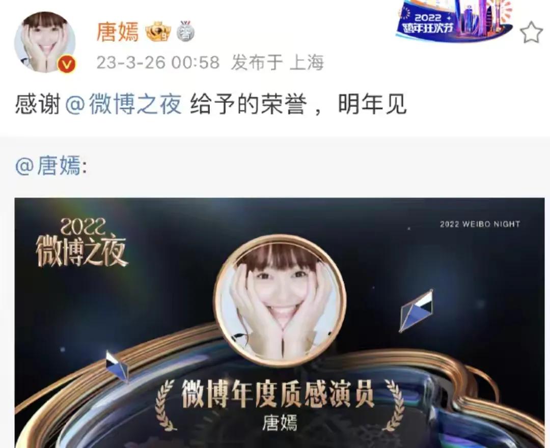 微博是看人下菜。唐嫣最近没什么作品,资源拉垮,迟到就被拦了,换当红的时候绝对不会不让进。