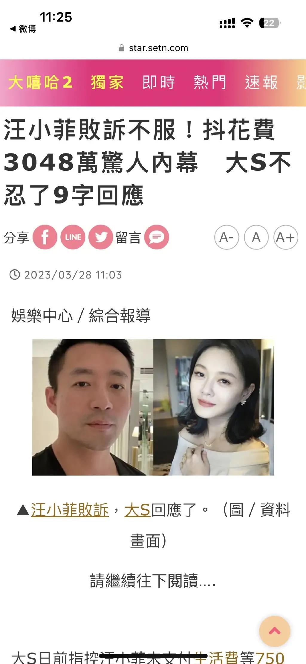 汪小菲应该想办法怎么让台湾骗子再得不到一分钱,而不是去台湾打没用的官司。在台湾被收复以前,你在全是台独分子的法庭里打官司,作为一个大陆人,能赢才是怪事。赶紧宣布你台湾的所有资产都破产吧,该卖的卖,该砸的砸。只要你在台湾没有资产,台湾的判决就是废纸一张。