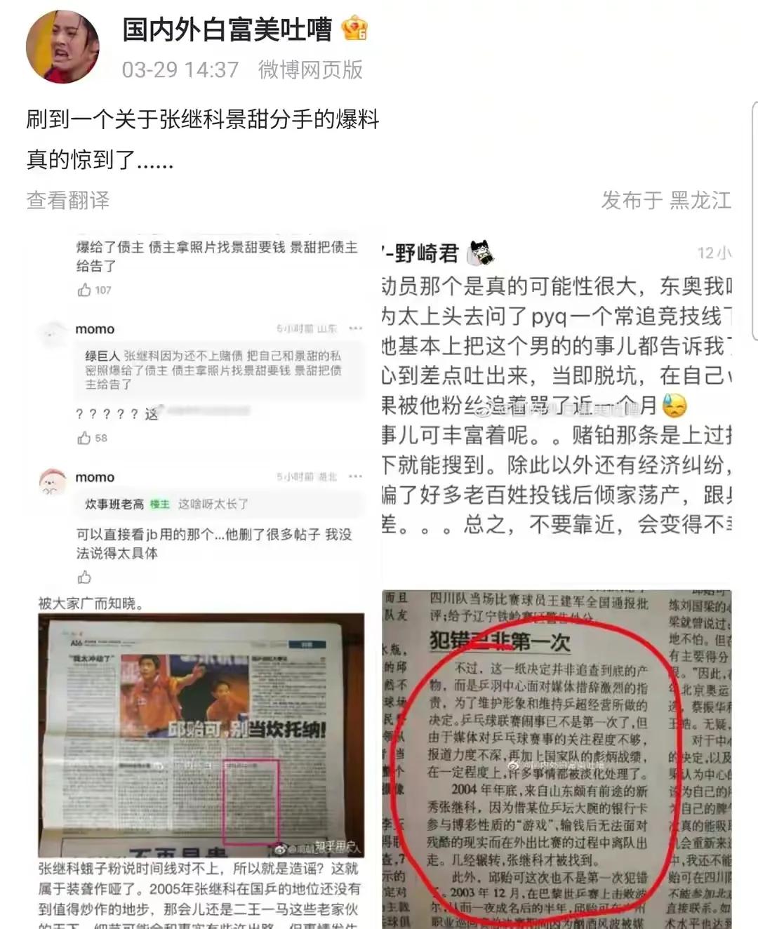 张继科被曝欠巨额赌债,抵押景甜的私密照? 这个爆料人比较熟悉张继科,圈内知情人透露某运动员人品挺渣的。 如果是真的,景甜也太倒霉了,爱错人还要被人出卖,爆料人说景甜已经起诉张继科的债主。 这种事情难道不是报警吗?人心难测,希望不是真的。