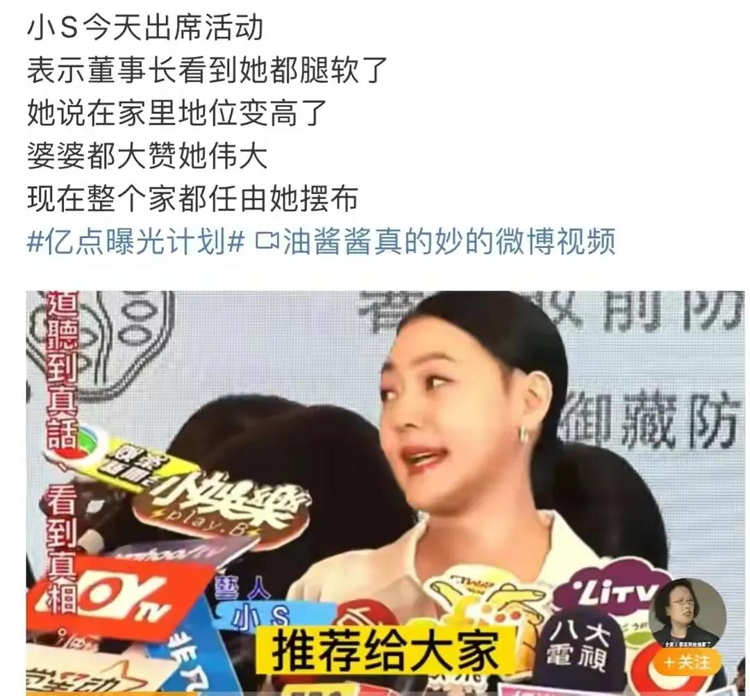 小S大变样,脸肿嘴歪法令纹重,整个人像胖头鱼一样,好丑。 乍一看还以为是发福的大S,没想到是小S,可能是医美过度。 小S想追求少女感,可能打针打多了,少女感没有,已经是个中年女人形象了。 相由心生吧,看来她最近过得不太好。