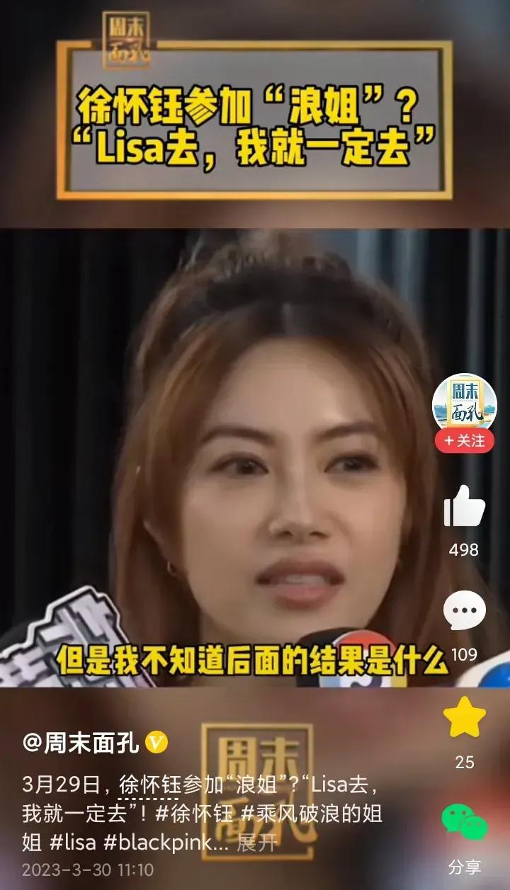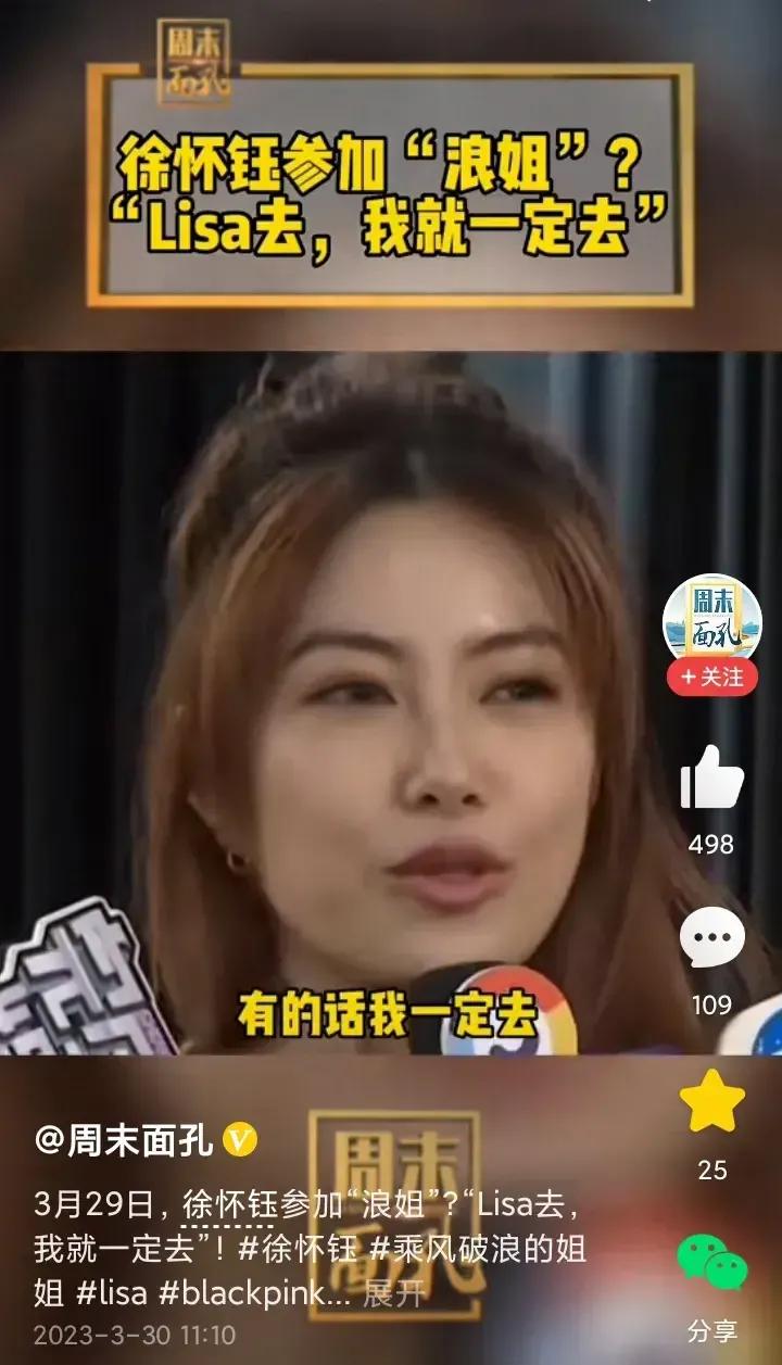 徐怀钰接受采访,言论引起争议! 徐怀钰回应参加浪姐,她说公司还在谈,如果Lisa去的话,她就一定去。 很多人都嘲笑她脸太大,真把自己当回事,其实徐怀钰很有名的。 徐怀钰的成名曲是《我是女生》,只是她不一定能复制王心凌的翻红之路,徐怀钰的歌曲太少女太孩子气,王心凌可盐可甜,没有可比性。