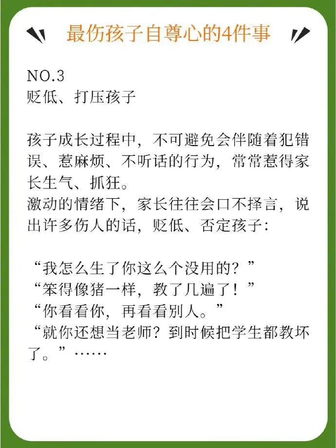 最伤孩子自尊心的4件事,家长要重视。