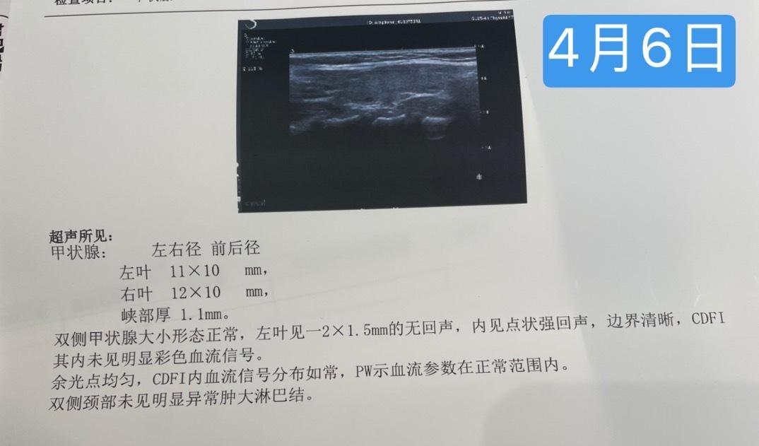 出差回来下午门诊。儿童甲状腺囊肿临床不多见,然一外地9岁女孩双侧囊肿,今日复诊,母亲拿出新的B超检查报告。与以前的报告对照,发现经几个疗程的中药治疗,一侧已经消除。今适当调整处方,继续治疗,希望另一侧也尽快消失,特予记录。