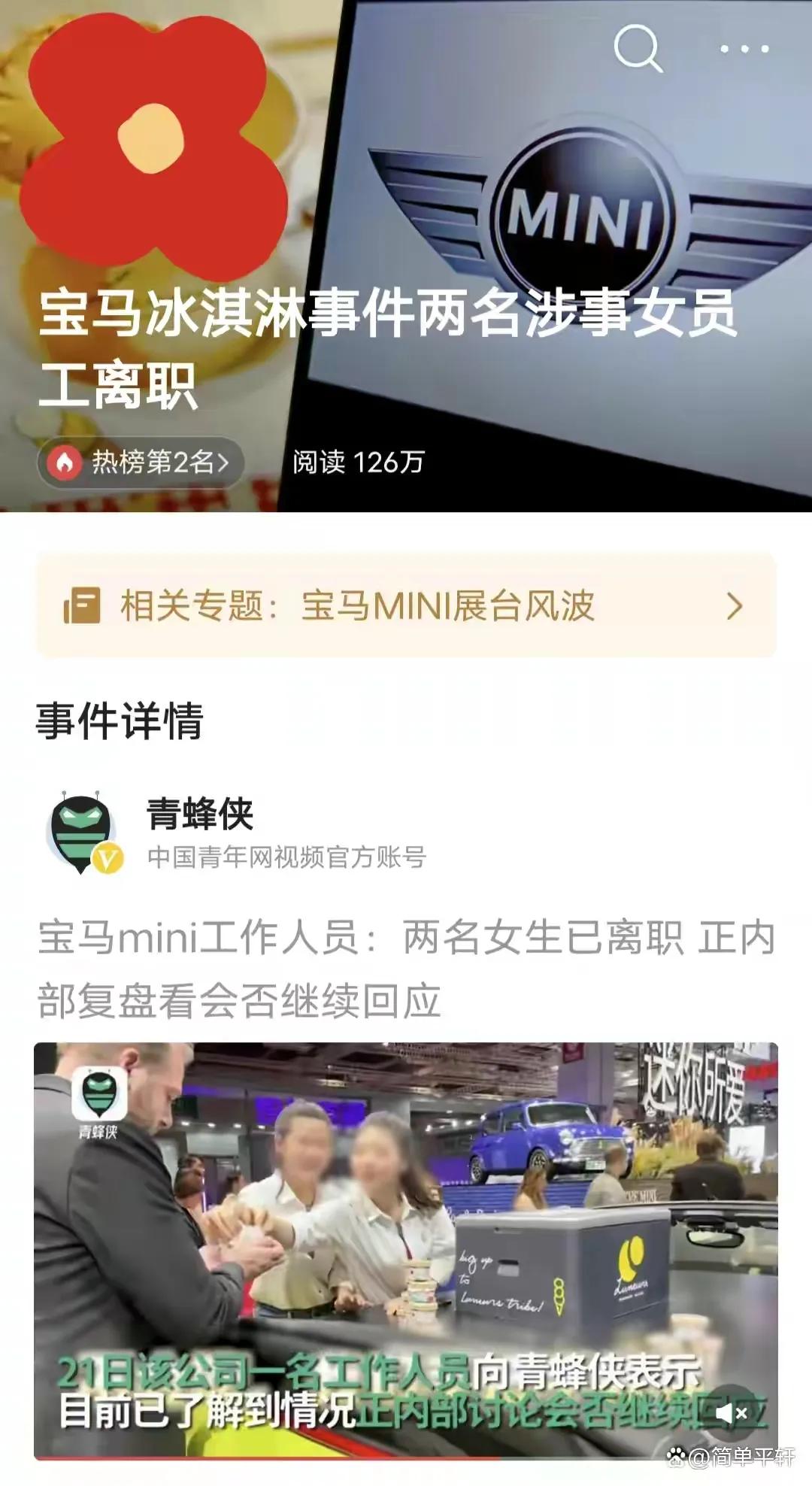 宝马冰淇淋事件两位女员工离职,大家不要再网暴她们! 试想一下,如果不是公司安排,她们会区别对待吗?她们只有执行的权利,没有自作主张的权利。 宝马道歉公关文,甩锅给她们,说是给几位外籍员工预留的,完全没有说到重点。 女员工既然是礼仪小姐,应该用礼貌用语,而非直接说没了。 不过再怎么样,宝马付出了惨痛的代价,两个女孩也被迫离职,得饶人处且饶人,散了吧!