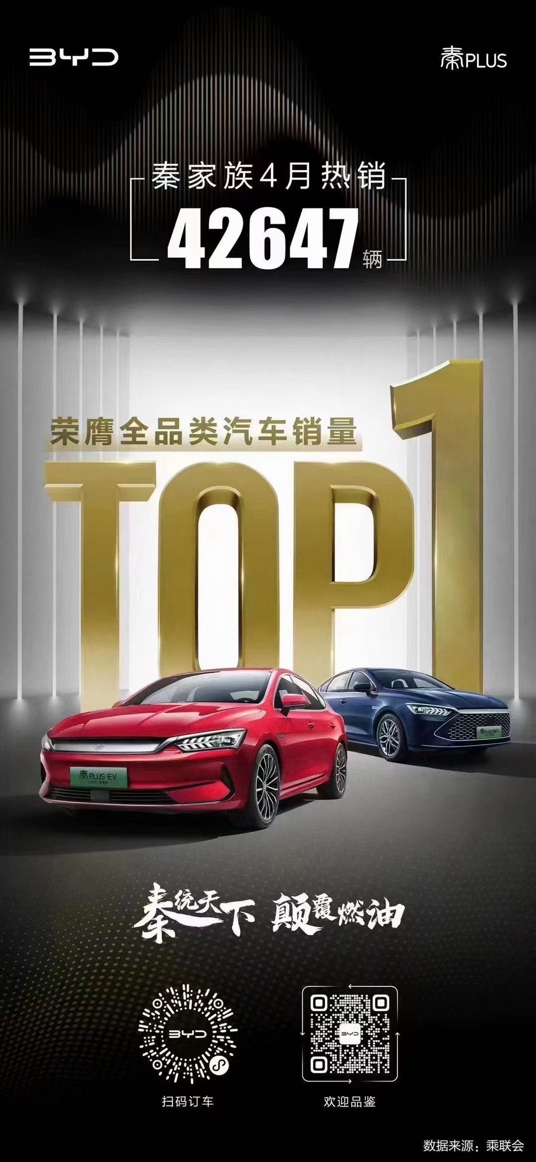 #比亚迪秦#家族,4月42647辆比亚迪在这个四月的销量看真是“一家独大”啊荣