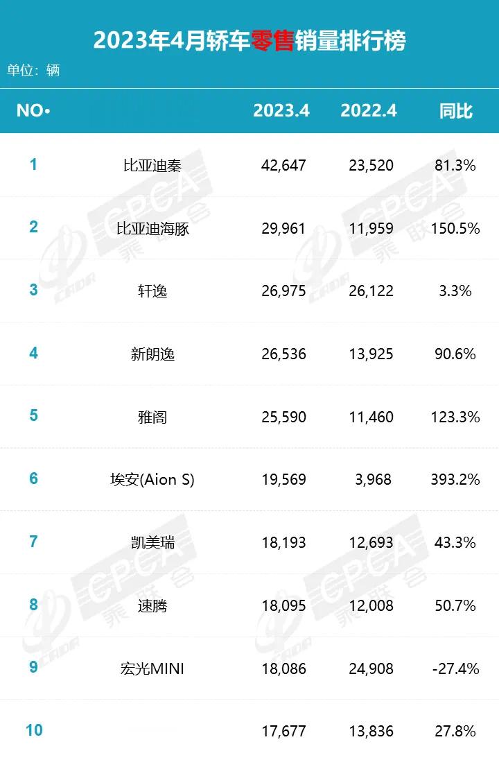 比亚迪在这个四月的销量看真是“一家独大”啊