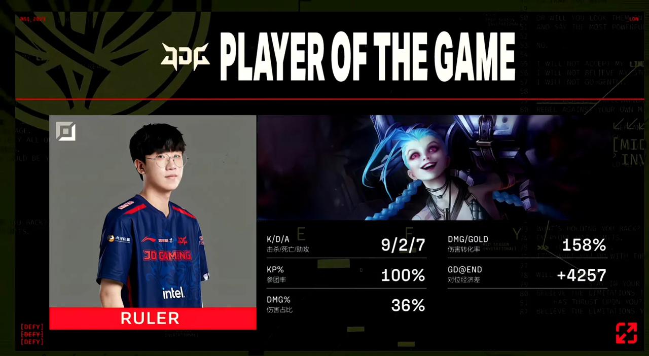 如果BLG这把都赢不了JDG的话,那确实证明两队硬实力包括状态都有差距。京东这把阵容其实也有问题,想四保一金克丝但又不完全保,导致ruler前面接二连三被冲死!但后面只能说尺帝乃至京东全队都打得太好了。 相比之下BLG这边,bin在拿到剑姬之后表现还是不错的,但其他人表现都很有问题。尤其是Elk,和LPL季后赛时的表现相差甚远!BLG更应该想想后面比赛。