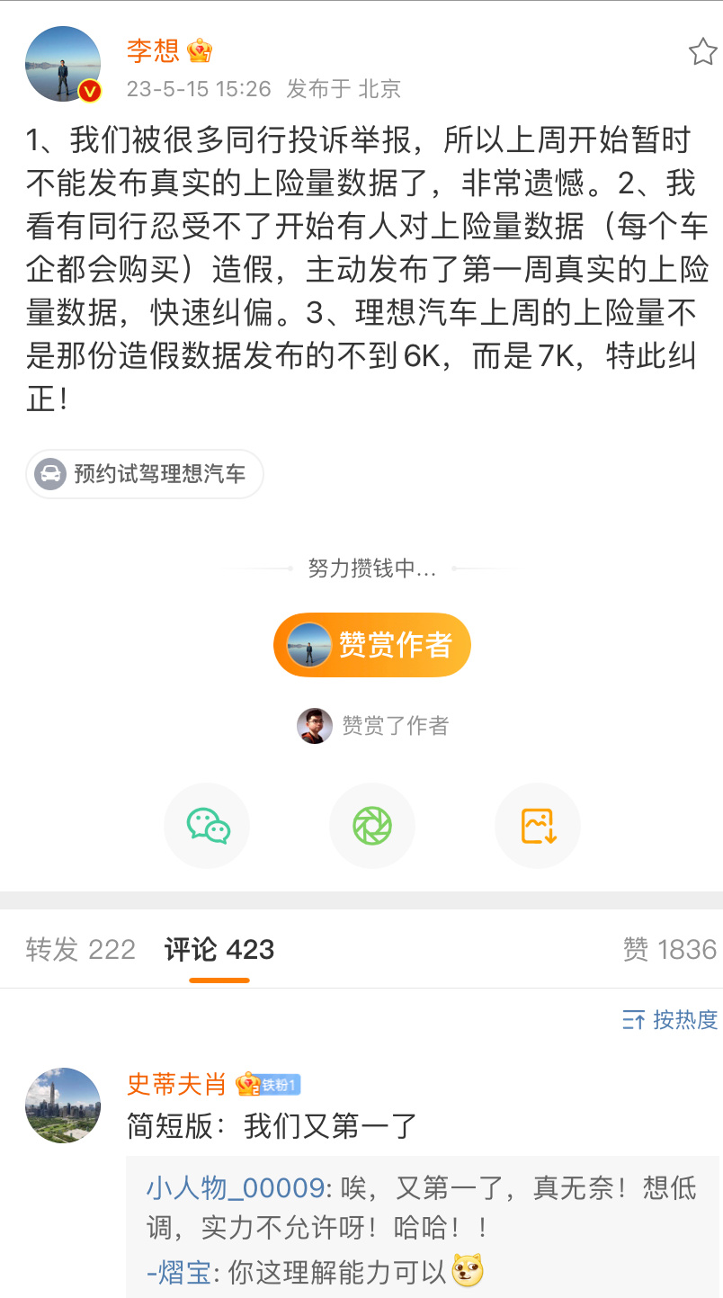#李想称被很多同行举报#