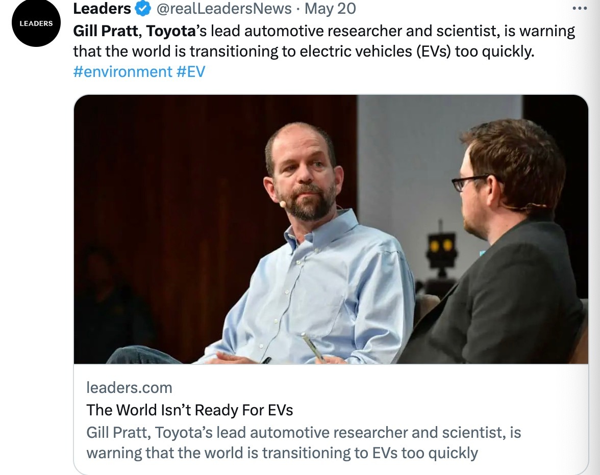 ②过快过渡到电动车可能会导致一些车主继续使用老旧汽油车,呼吁给混合动力车更长的时间。(这话丰田章男也说过,然并卵)