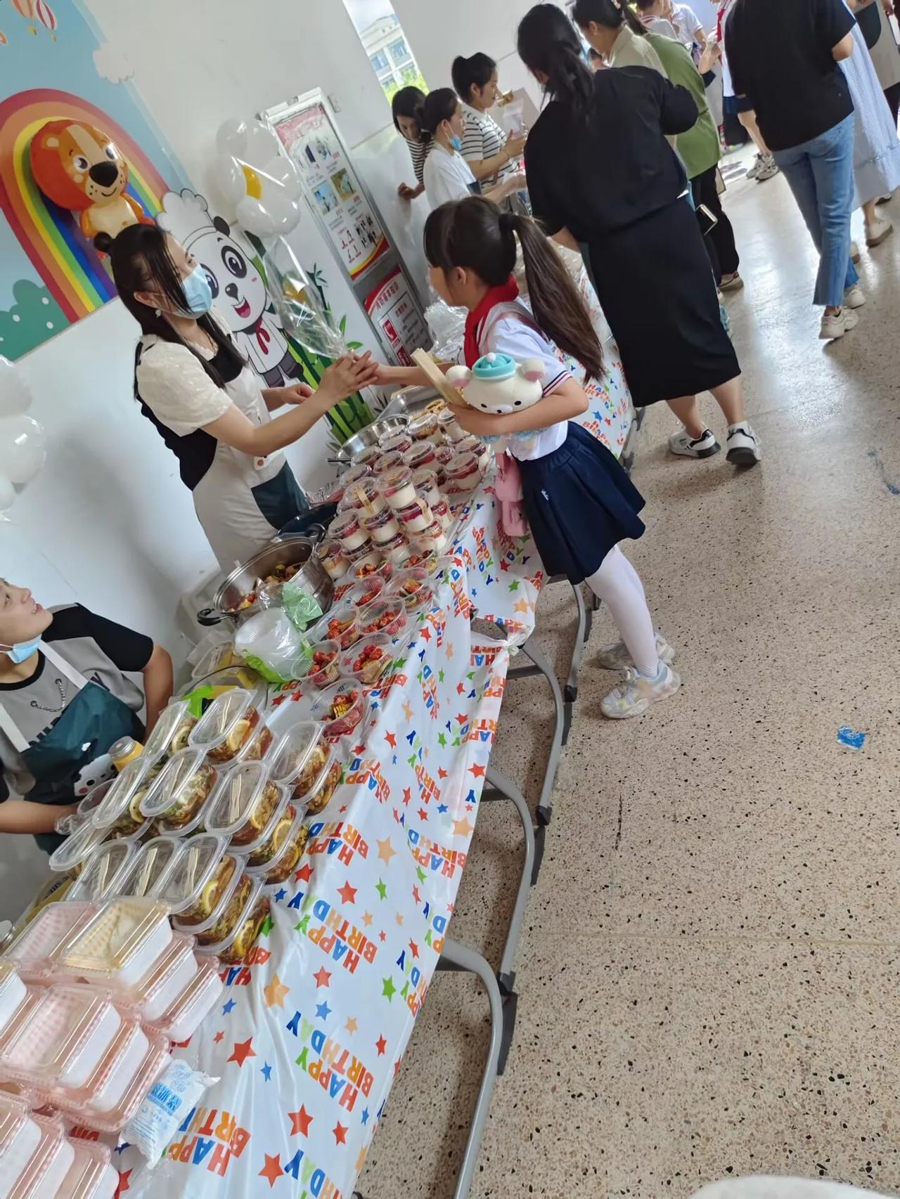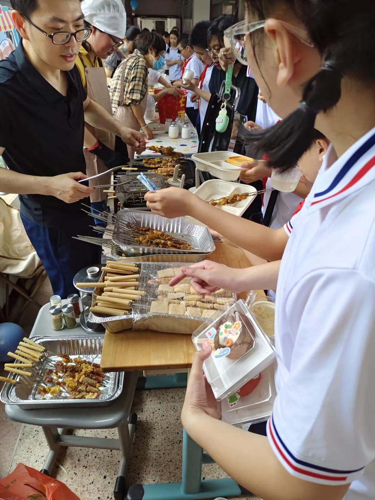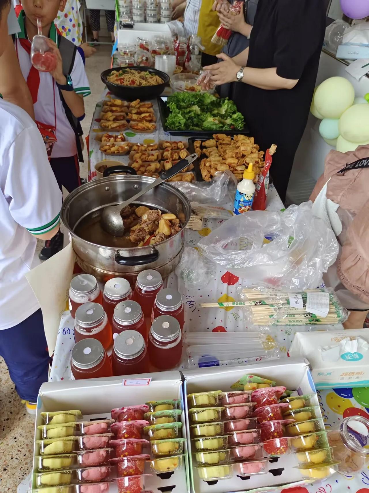 停下脚步,给自己放一天假,你会发现你也可以像所有的小朋友一样过儿童节,幸福就是那么的简单。 今天全中国的大朋友、小朋友,都在过六一儿童节,当然我也不例外。 上午我来到儿子的学校,参加他们学校的美食节,每个班上的家长们各显身手,各种各样的美食,一楼、二楼,全是家长们摆的摊位,全部便宜大促销。老师规定每个小朋友带的零花钱不要超过50元,我也和小朋友一样带着50元的现金在学校到处去逛。从上午10点就开始大朋友、小朋友到处买买买,吃吃吃。 在这里发现50元太经用了,因为家长们做的不管什么样的零食,都不会超过5元,更多的都是1-3元每样,突然感觉回到了小时候,50元还是一张可以花很久的大钱……吃了很多好吃的:烧烤,鸡翅,杨枝甘露,冰粉,麻薯,糖葫芦,棉花糖,蛋糕,小龙虾,关东煮,冰淇淋,还有一些不知道名字的小零食,不知不觉肚子就吃饱了,而我的50元还没花完。 今天,30多岁的我,也过了一次久违的儿童节。