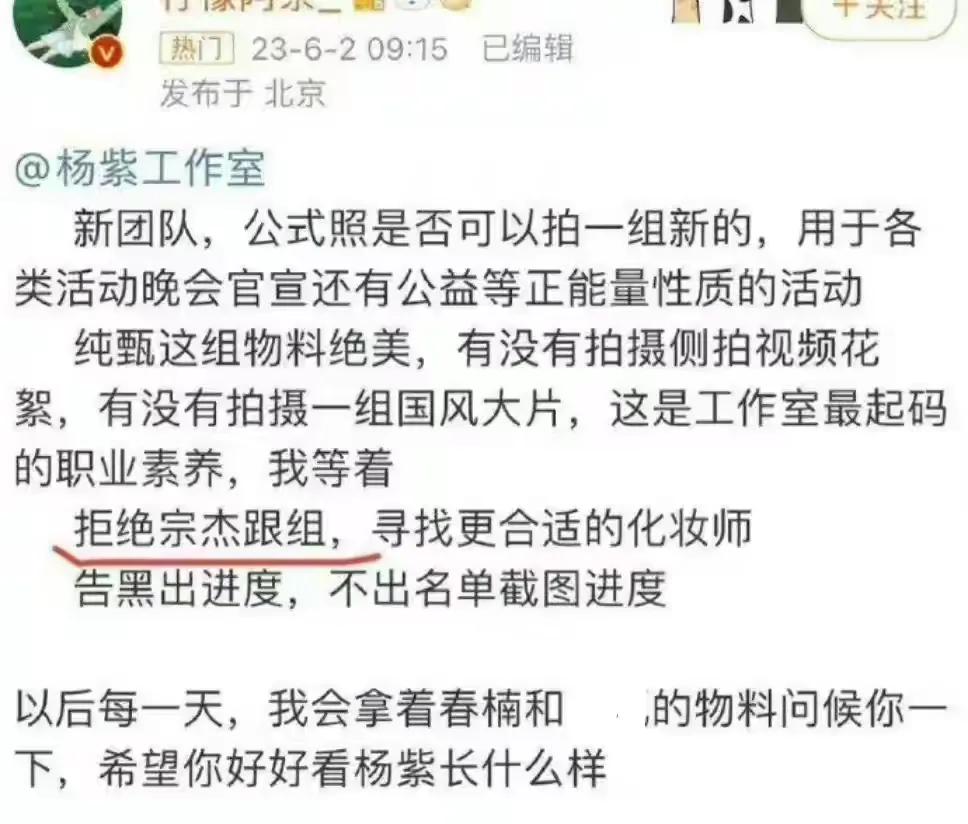 杨紫的化妆师快崩溃了,不堪粉丝骚扰直接求饶。 粉丝们也真是的,杨紫变成这样,不能一味怪化妆师。 是不是该劝一下杨紫不要做医美了,当然我个人很喜欢杨紫,她性格真的超好。 她又不靠颜值吃饭,粉丝们别什么都怪化妆师啊,打工人不容易! 他是化妆师,又不是魔术师!