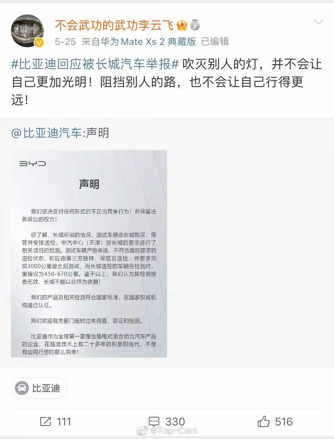 #长城汽车# 与#比亚迪# 现在可谓是进入了全面对抗阶段上游车企端,公开举报中游