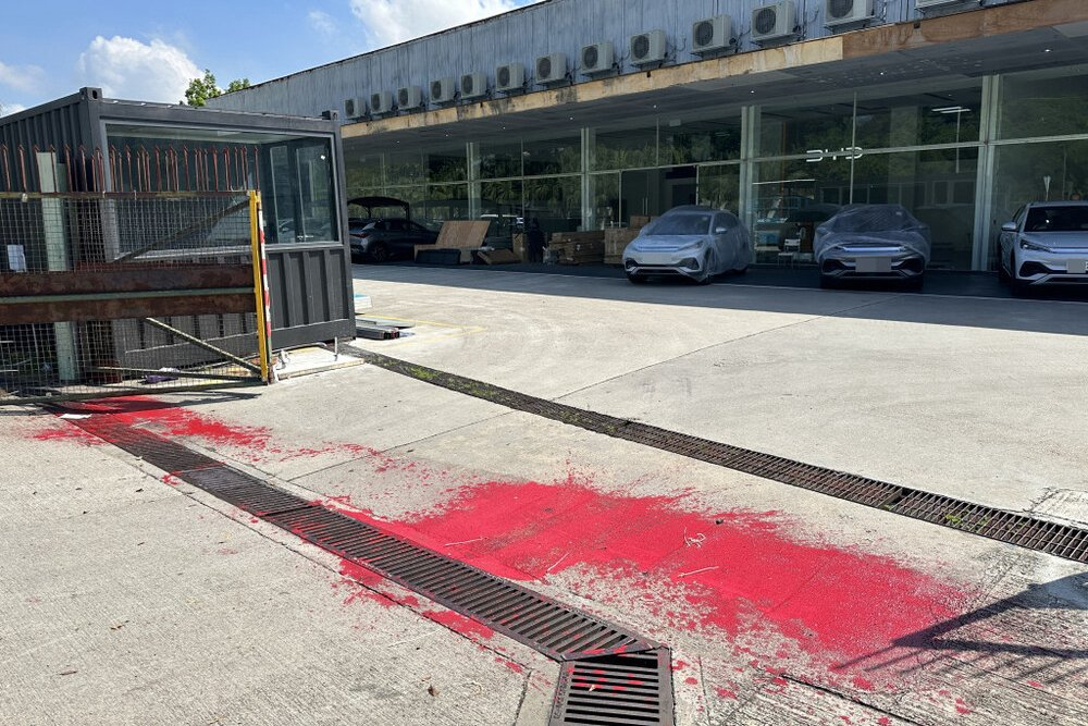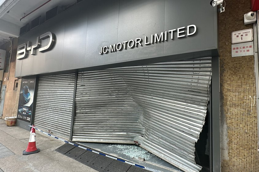 【#比亚迪# 在香港的四家门店今早被砸或被喷红漆】